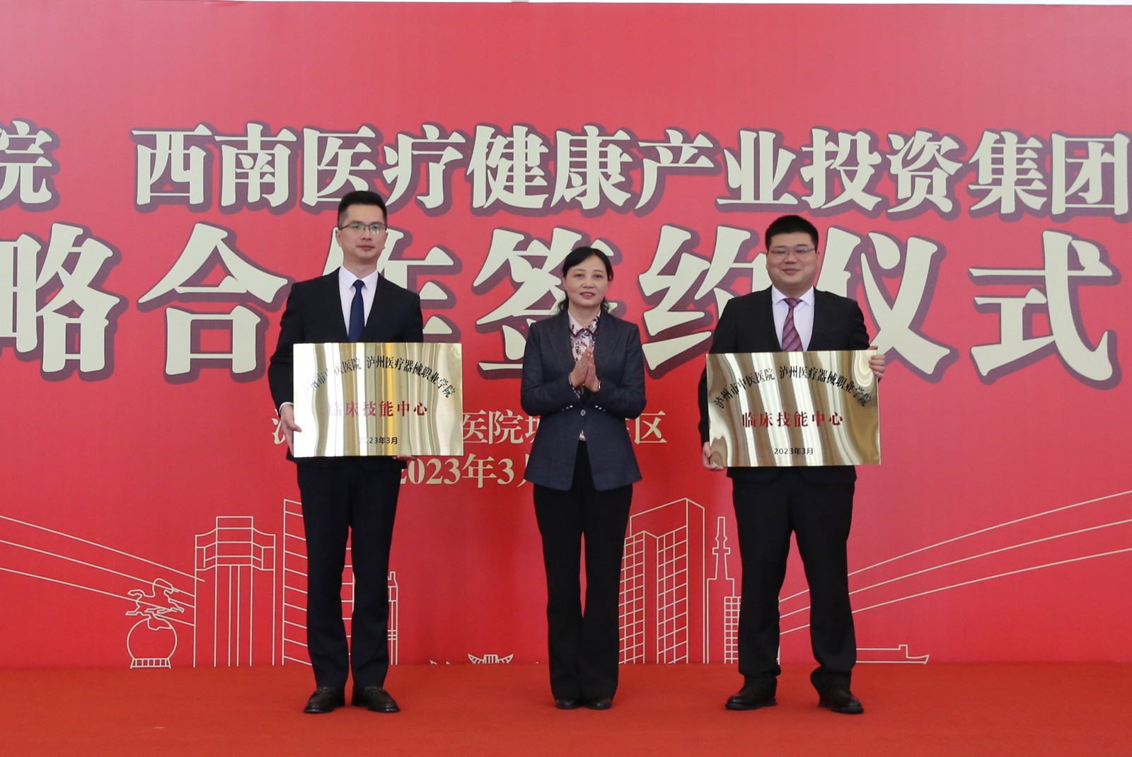 儀式上,雙方簽訂了戰(zhàn)略合作協(xié)議,對合作的瀘州市中醫(yī)醫(yī)院·西南醫(yī)投集團(tuán)醫(yī)療護(hù)理實訓(xùn)基地、體檢中心專科聯(lián)盟,瀘州市中醫(yī)醫(yī)院·瀘州醫(yī)療器械職業(yè)學(xué)院臨床技能中心進(jìn)行了授牌。