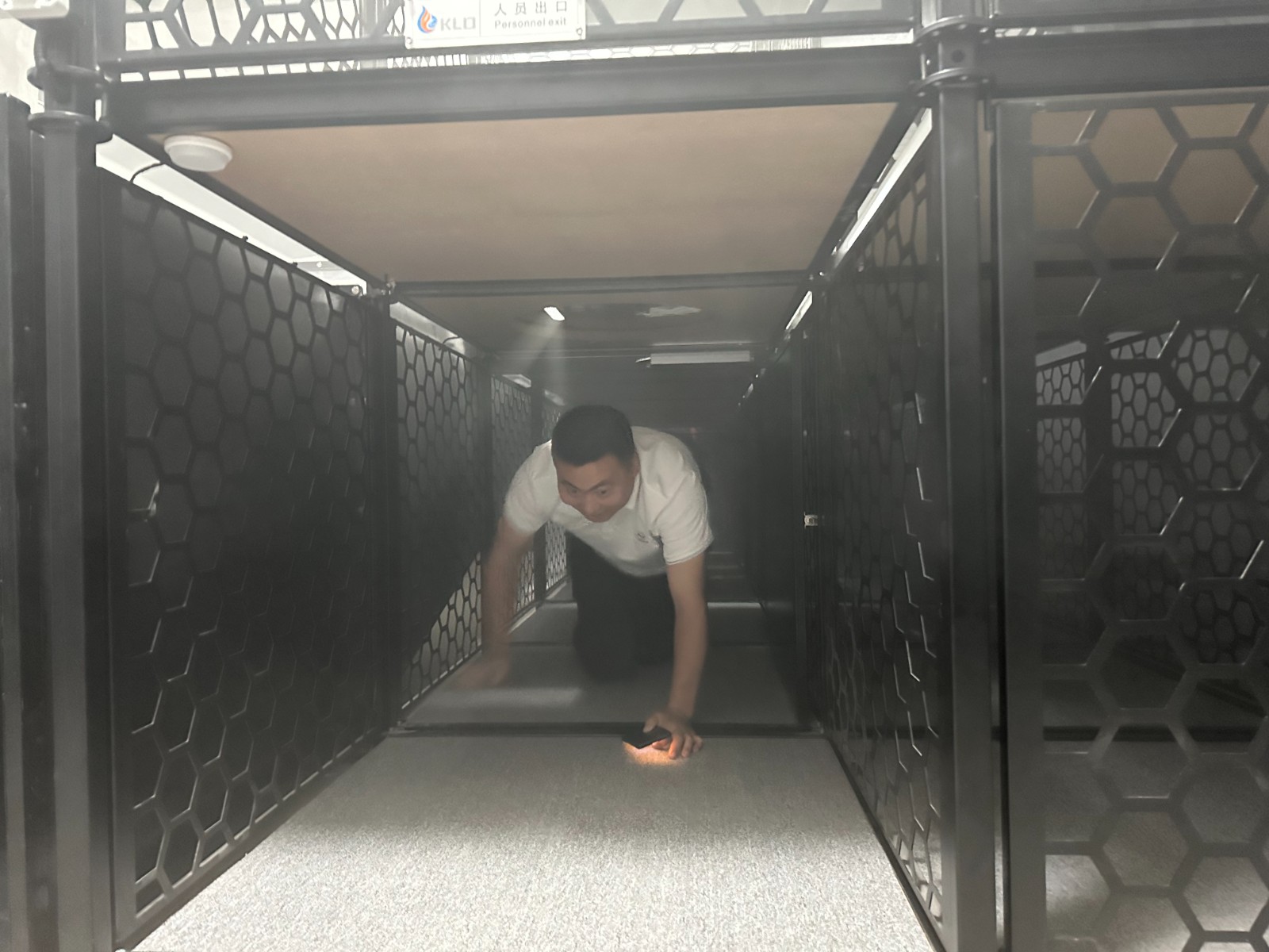大家參觀了基地的遠程供水車、登高車與泡沫滅火車等大型救援和后勤保障裝備,隨后來到煙熱實戰(zhàn)訓練控制室,學習了建筑火災(zāi)高溫煙氣燃燒風險的辨識與預(yù)判以及如何在煙火環(huán)境下進行自救、互救。最后在煙熱模擬訓練室進行了一場濃煙和高熱環(huán)境下的逃生訓練。